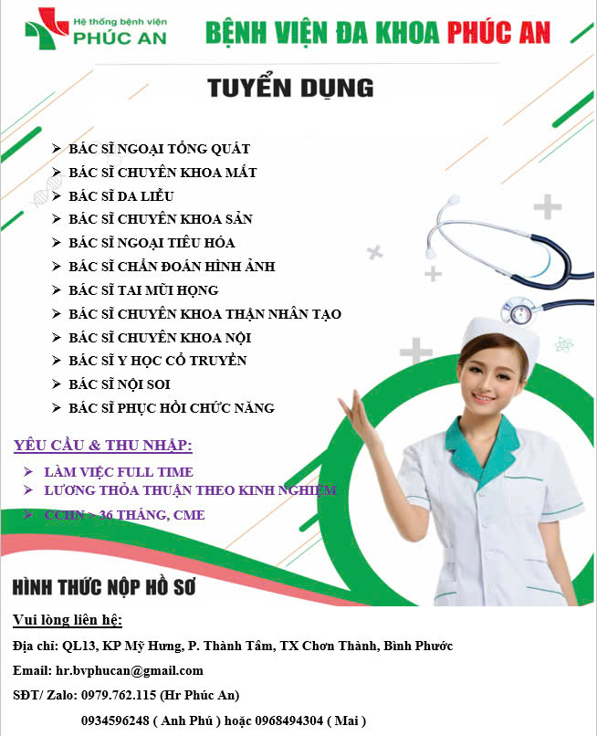 BỆNH VIỆN ĐA KHOA PHÚC AN CẦN TUYỂN GẤP NHỮNG VỊ TRÍ SAU: