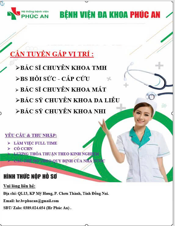 BVĐK PHÚC AN TUYỂN DỤNG BÁC SĨ THÁNG 10/2025