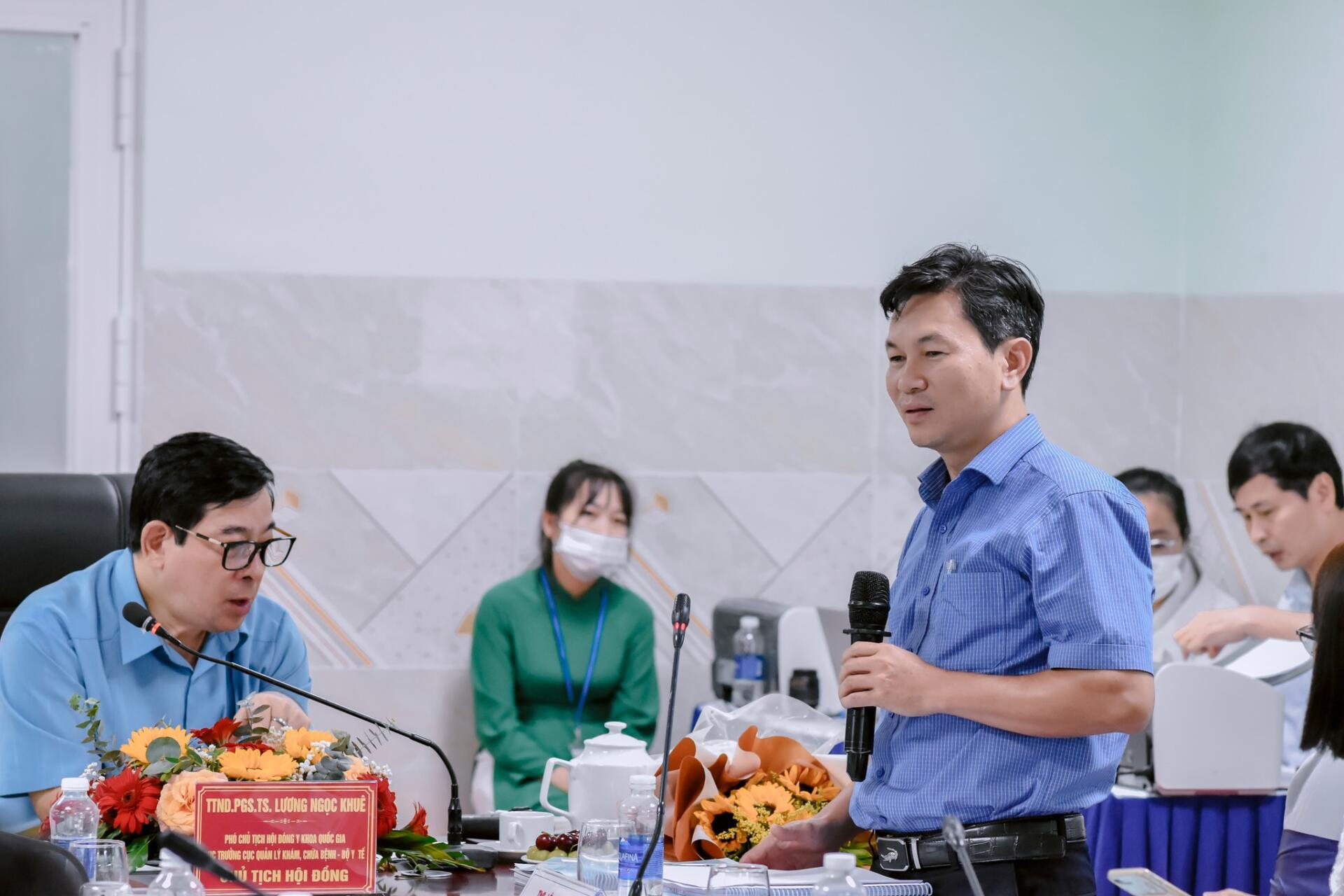 Bác sĩ chuyên khoa II Lê Văn Thế – Giám đốc Bệnh viện Đa Khoa Phúc An báo cáo đến đoàn thẩm định Bộ Y tế