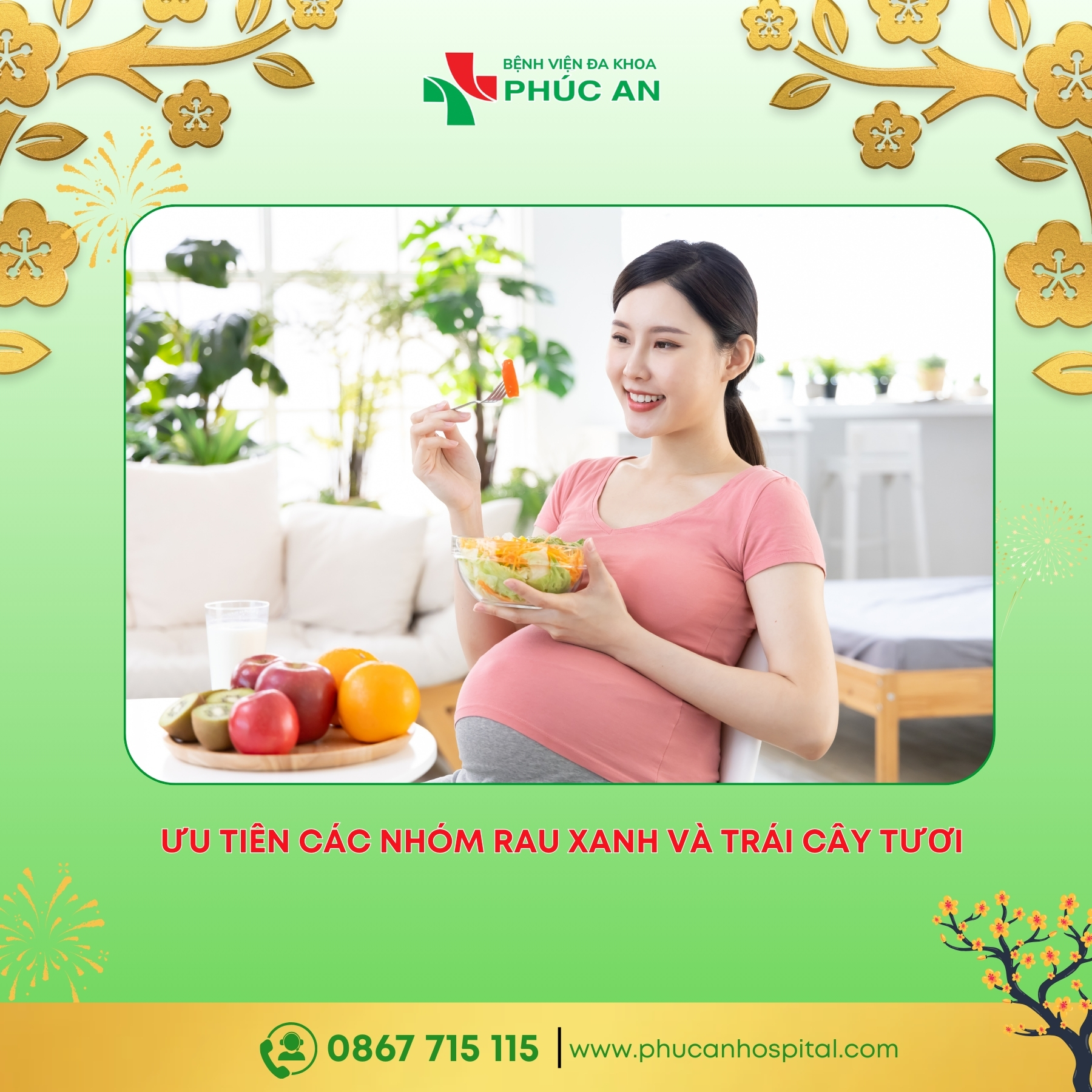 Dịp Tết Nguyên Đán với vô vàn món ăn hấp dẫn thường khiến các mẹ bầu lo lắng về việc kiểm soát cân nặng và đảm bảo an toàn thực phẩm. Làm sao để vừa tận hưởng không khí Tết, vừa đảm bảo dinh dưỡng tốt nhất cho thiên thần nhỏ? Hãy cùng các chuyên gia Sản khoa tại Bệnh viện đa khoa Phúc An tìm hiểu thực đơn “vàng” cho mẹ bầu dịp Tết này nhé!