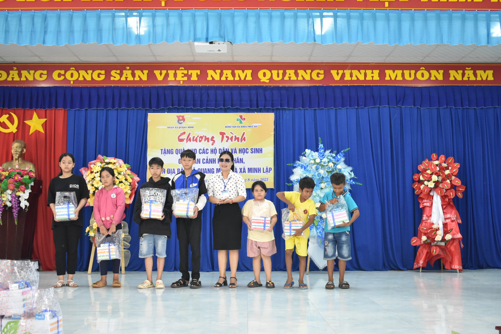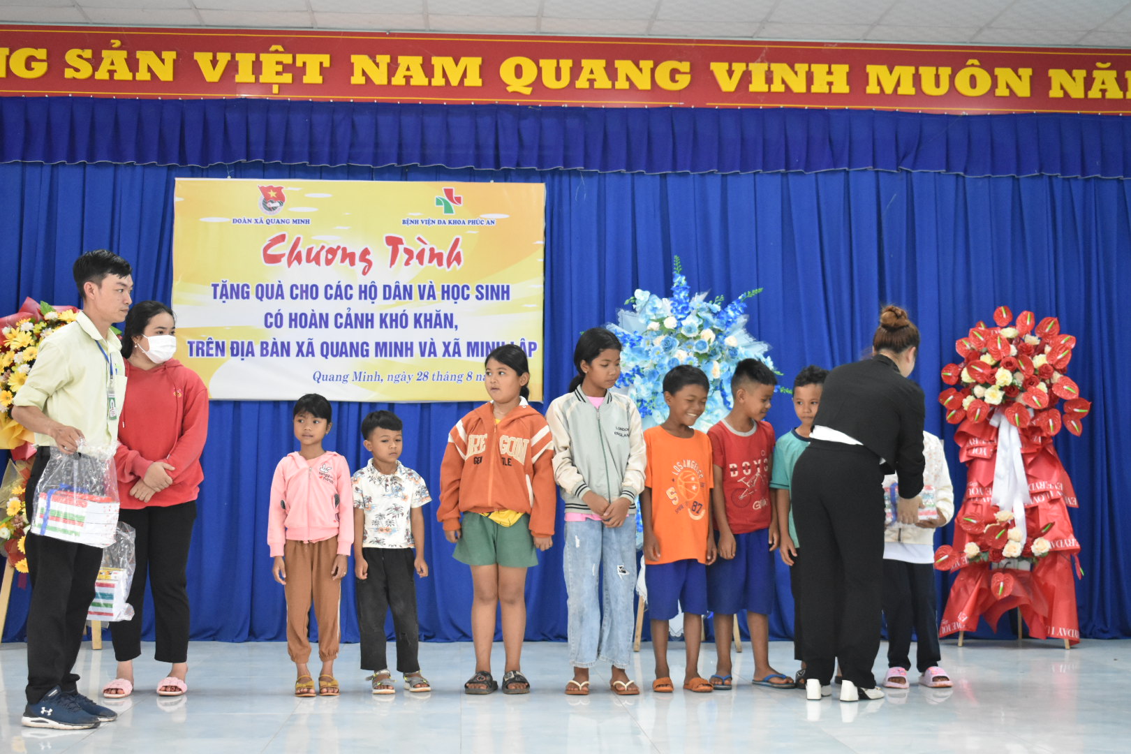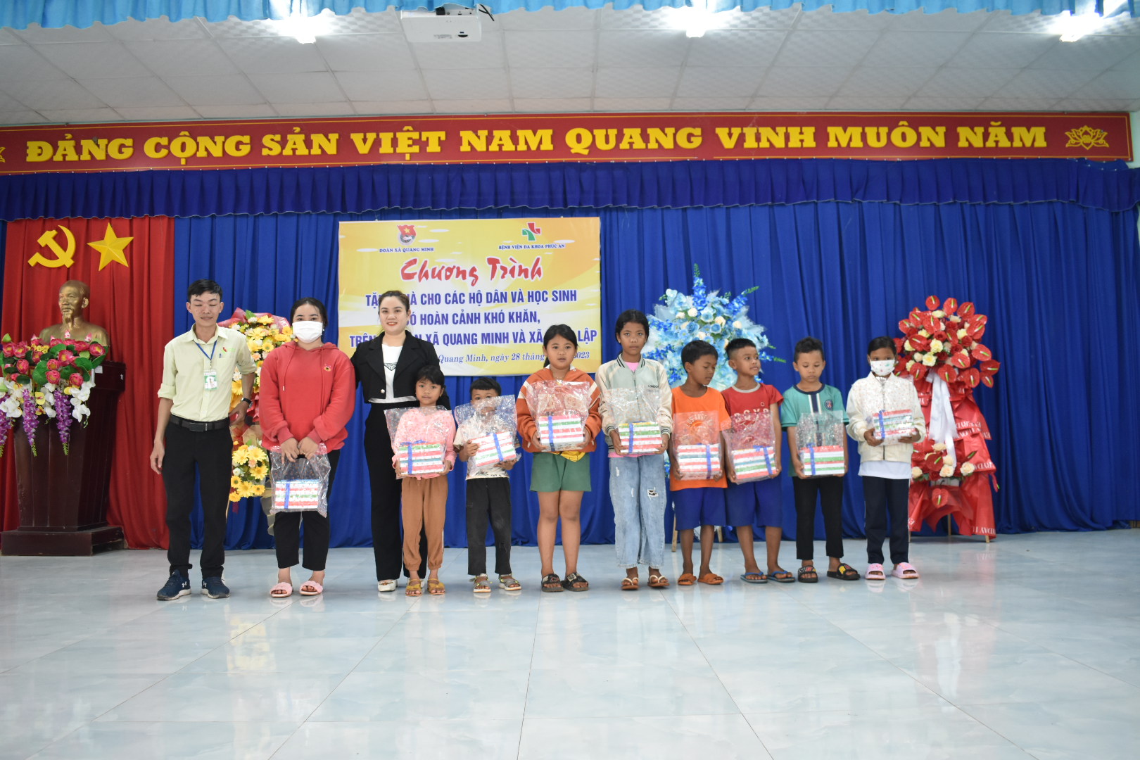 BỆNH VIỆN ĐA KHOA PHÚC AN tổ chức chương trình từ thiện tặng quà cho các hộ gia đình và các em học sinh có hoàn cảnh khó khăn tại xã Minh Lập, xã Nha BÍch, xã Quang Minh ngày 28/8/2023