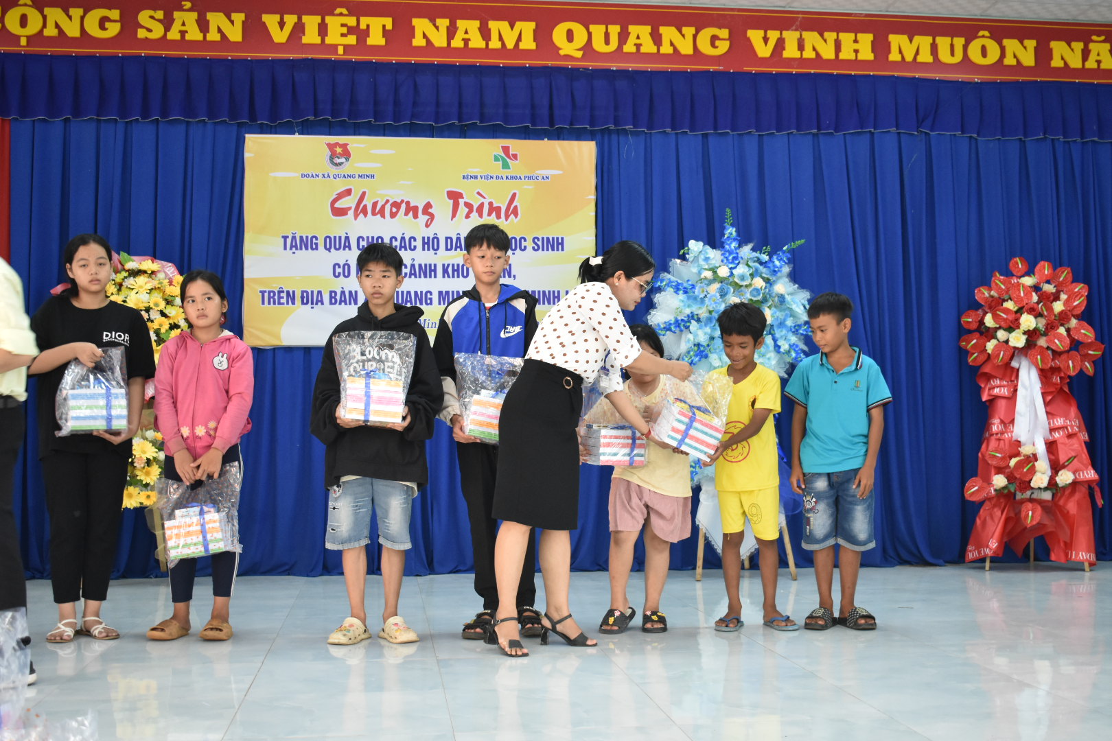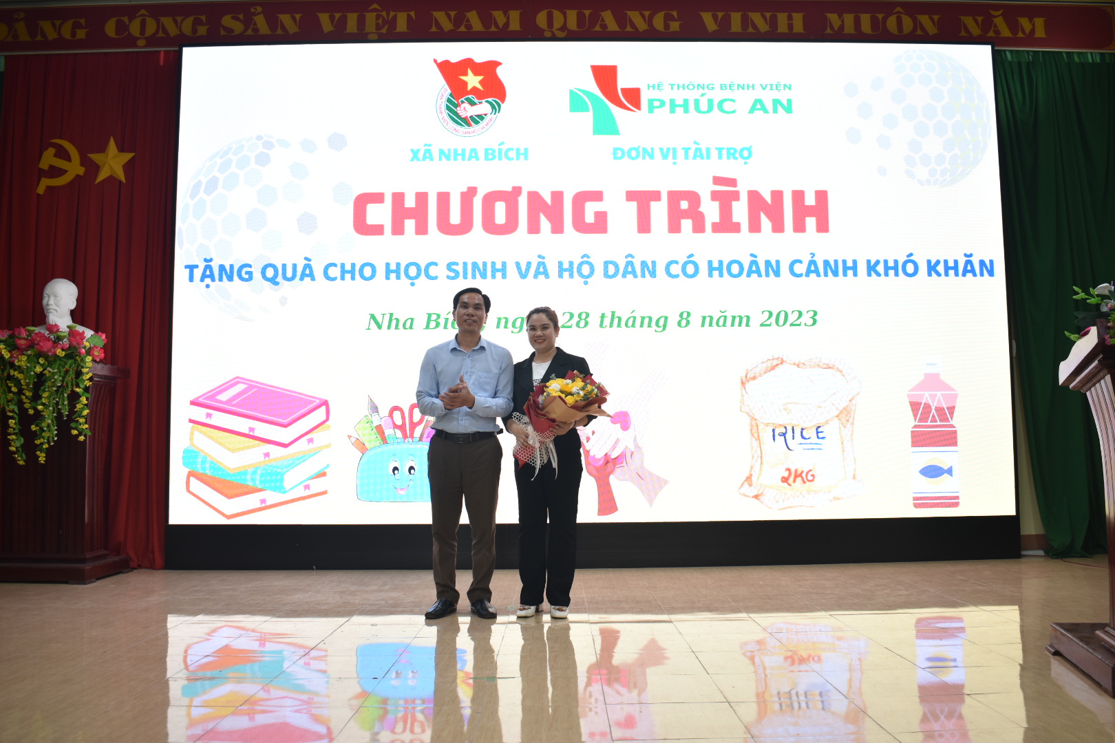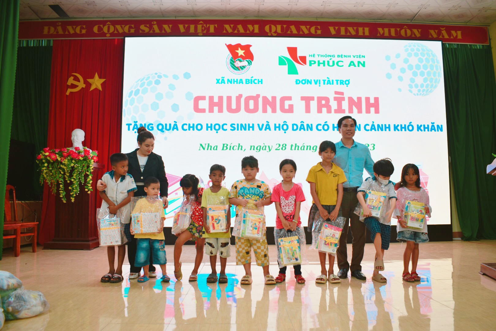 BỆNH VIỆN ĐA KHOA PHÚC AN tổ chức chương trình từ thiện tặng quà cho các hộ gia đình và các em học sinh có hoàn cảnh khó khăn tại xã Minh Lập, xã Nha BÍch, xã Quang Minh ngày 28/8/2023