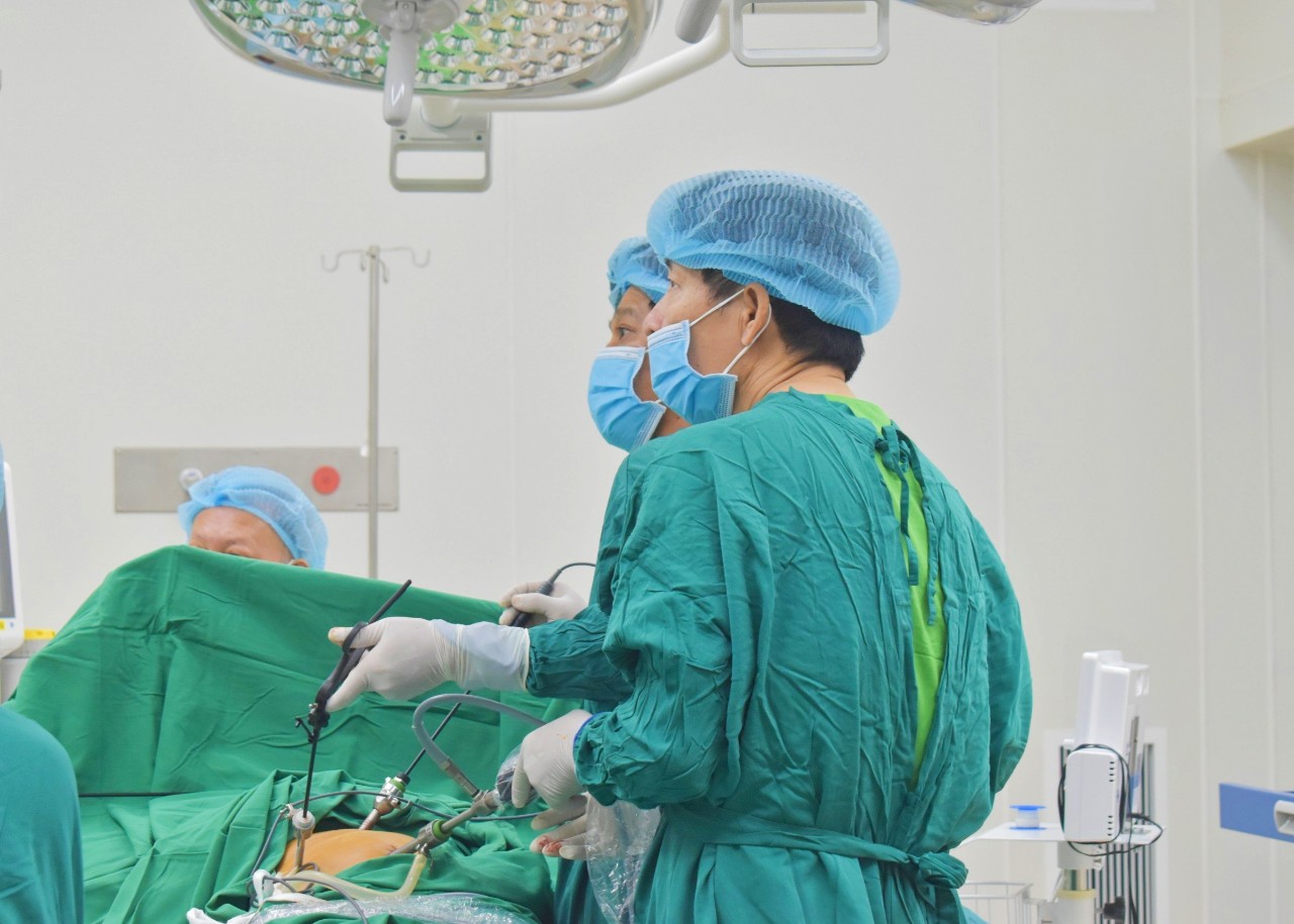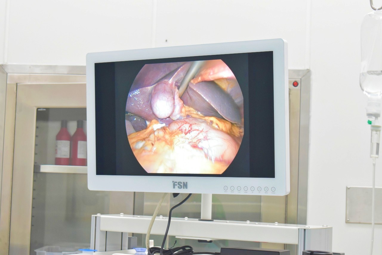 Ekip do bác sĩ Huỳnh Thái Nam làm kíp trưởng đã thực hiện gây mê và sử dụng các thiết bị nội soi hiện đại để tiến hành phẫu thuật, cắt bỏ túi mật.