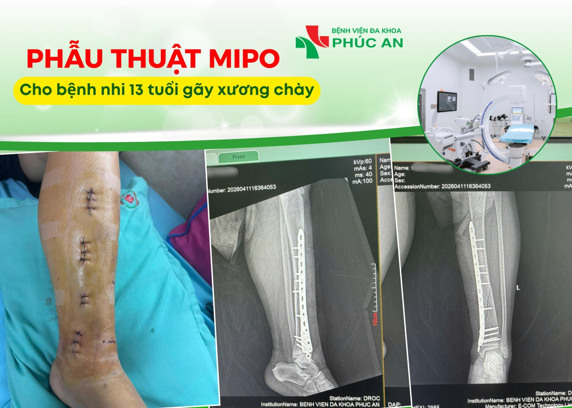 PHẪU THUẬT MIPO – PHƯƠNG PHÁP KẾT HỢP XƯƠNG ÍT XÂM LẤN CHO BỆNH NHI 13 TUỔI GÃY XƯƠNG CHÀY